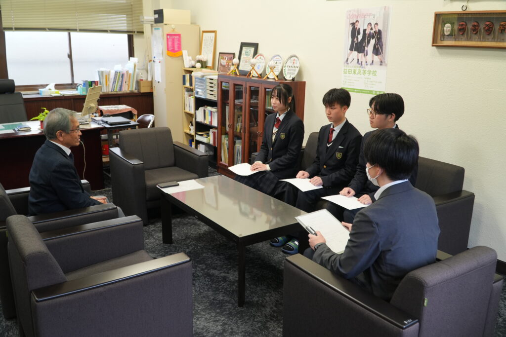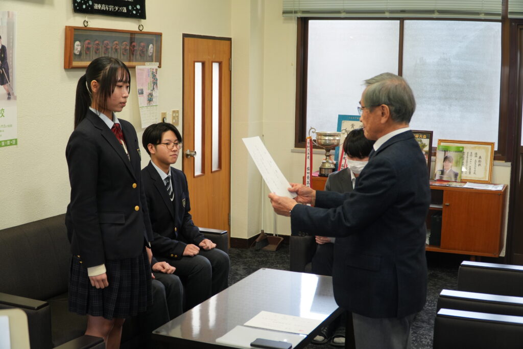 1月29日(木)に生徒会任命式が行われました。生徒会長 (1年5組、土井 さくら) 副会長の2人 (1年5組、田村 岳志 | 1年4組、田中 葉平) が任命されました。生徒が少し緊張する様子でしたが、1年間東高の皆さんのために頑張ることを告げ、校長先生から応援の言葉を頂きました。
